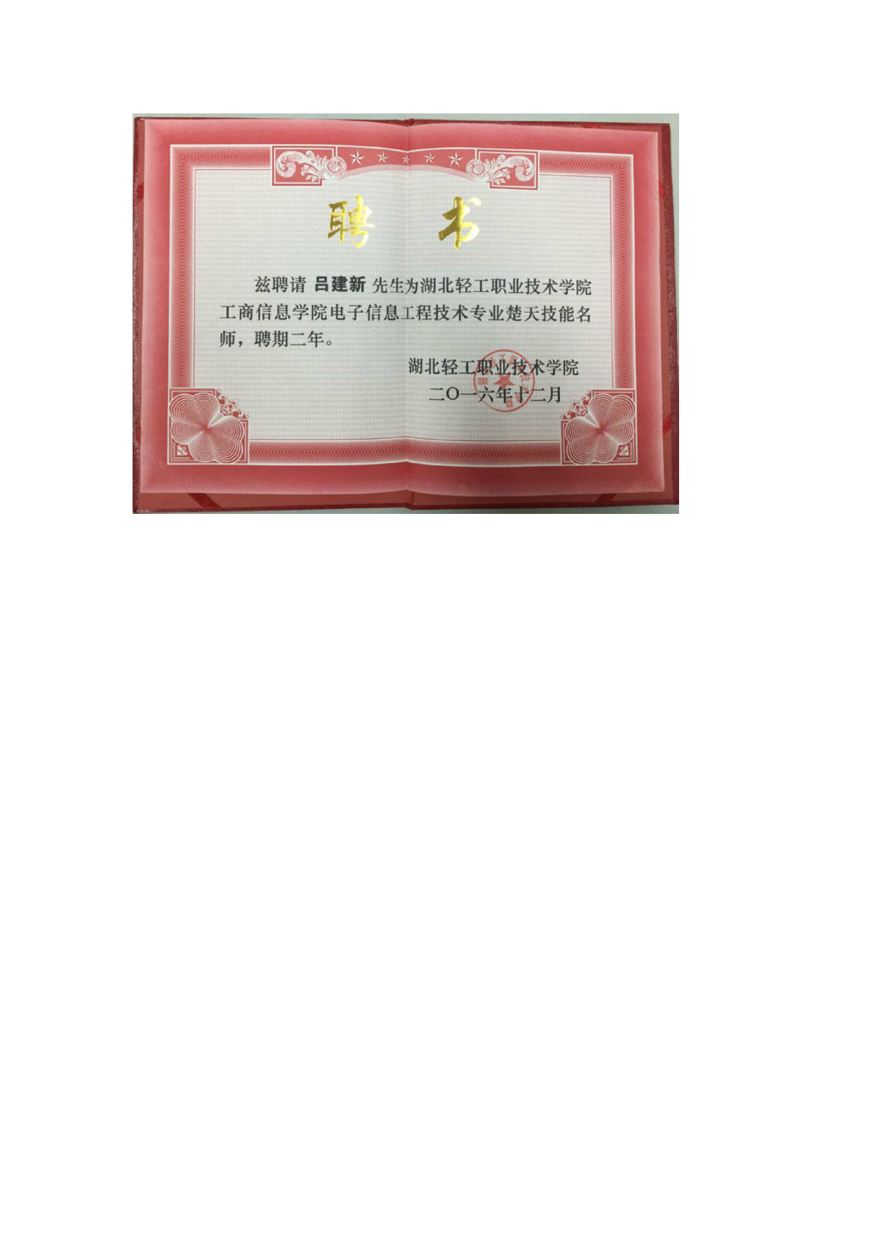 聘请吕建新同志为公司电信专业楚天技能名师