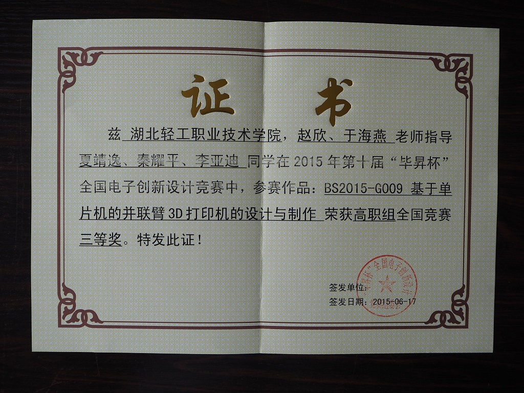 第十届“毕昇杯”全国老员工电子设计创新大赛圆满落下帷幕,公司员工作品《基于单片机的并联臂3D打印机的设计与制作》荣获全国三等奖。