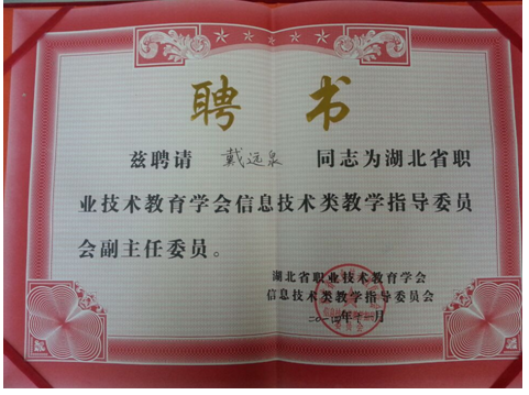 同时,会上增补了戴远泉副教授为湖北省职业教育学会信息技术类教指委副主任委员,并作了即席发言。
