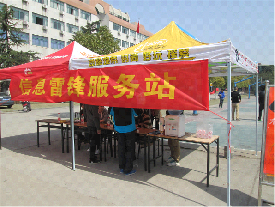 那一边,在公司篮球场旁有一支特殊的志愿者队伍,很多同学都驻足围观。那正是我系优秀员工干部组成的“信息雷锋服务站 ”,他们在力所能及的范围内帮助一些有需要的同学,比如帮同学搬水上楼,帮不会缝衣服的同学缝补衣服,帮有需要的同学修电脑,给口渴的同学送上一杯水等等,这些看似非常简单助人行为却不是人人都能做到的。他们不求任何回报,有的同学甚至连午饭都来不及吃就来服务站工作,这种雷锋精神值得我们大家学习。