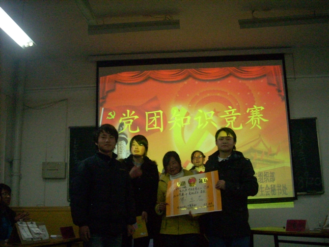 最后,在观众们的掌声中,此次党团知识竞赛接近尾声,09电信勇夺第一名,09会电一班和二班代表队分别夺得二、三名。