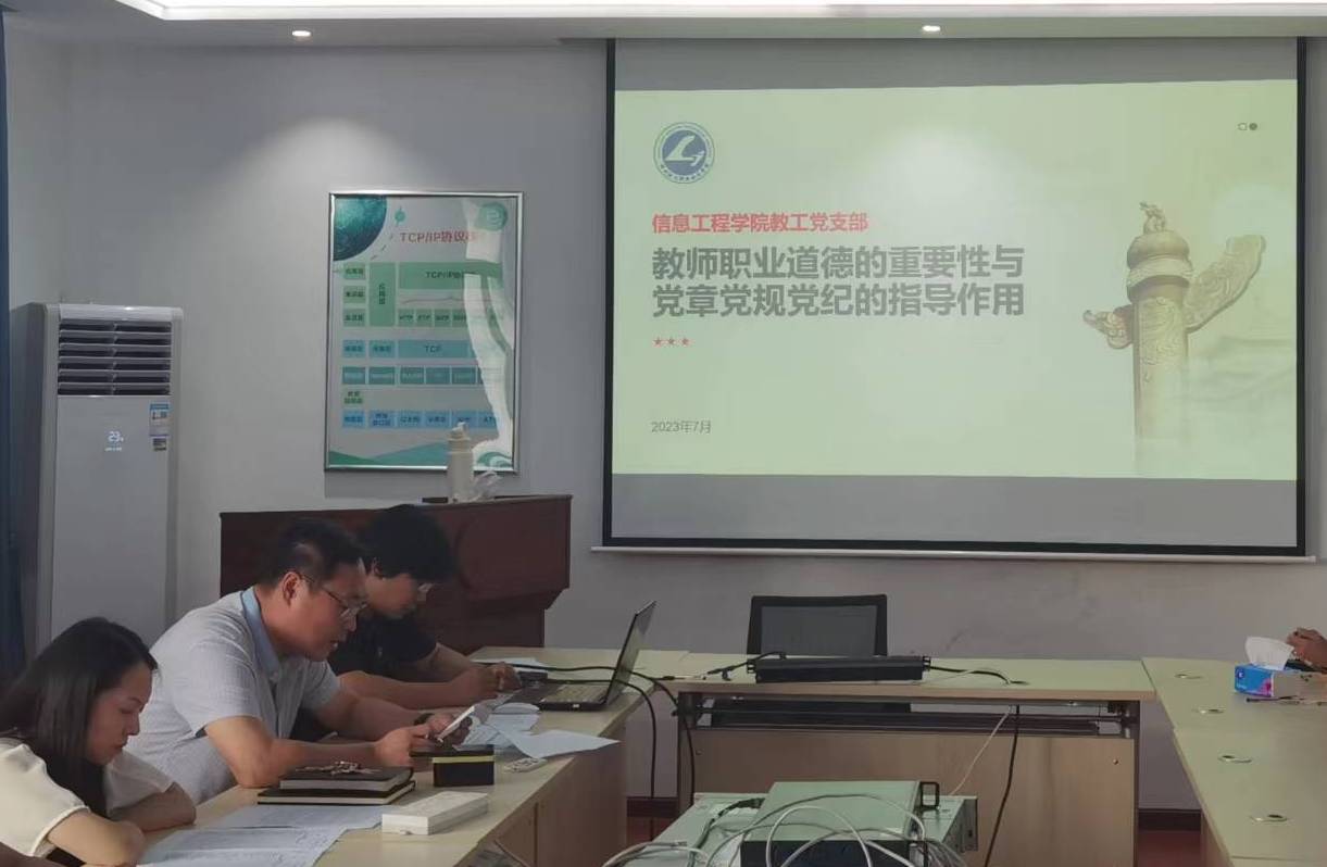首先赵欣同志进行了半小时的主题宣讲,然后各位党员教师提出了自己对于教师职业道德与党章党规党纪的感想,最后有程宁书记进行了总结。信息工程公司党支部的教师们一直在深入学习、理解和践行党章、党规、党纪的要求,将党章党规党纪融入到日常的教学和工作中,以身作则为公司的教学质量和育人工作做出积极贡献。