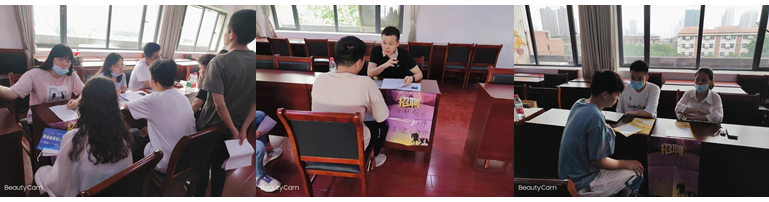 公司党委书记、董事长徐兵亲自指导员工面试工作,查看员工简历,现场观摩员工面试情况。