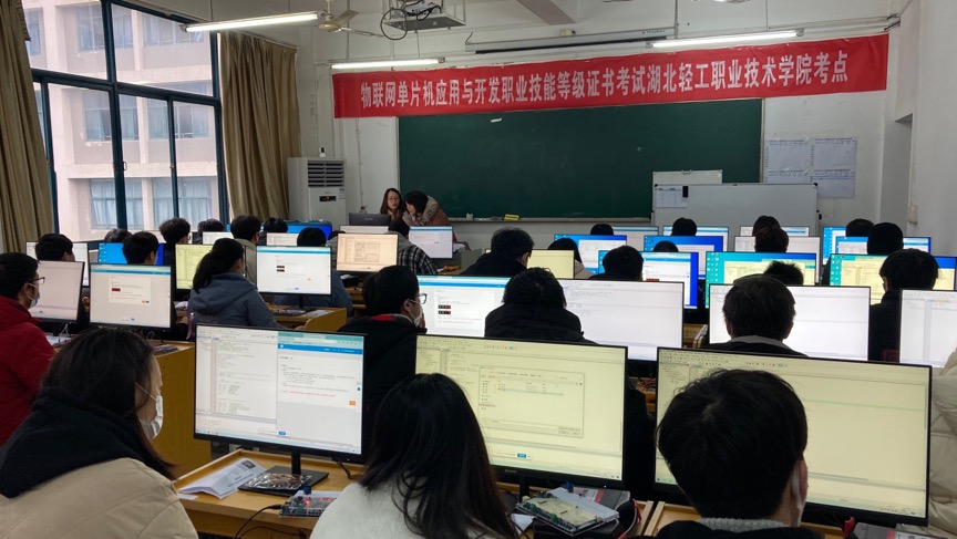 此次1+X物联网单片机应用与开发职业技能等级证书(中级)考试是电子信息工程技术专业第一次进行该证书的考试,公司教务处对本次考证提供了大力支持,组织相关教师进行了认证讲师培训,并采购了大量考证相关的设备。基于多年来本专业在物联网单片机相关课程建设和竞赛经验,最终决定进行中级证书考试,并制定了详细的培训计划,何伶俐、吴瑞、赵欣三位教师不辞辛苦利用晚自习、周末时间对参加考证的40名员工进行了为期一个月的考前培训。