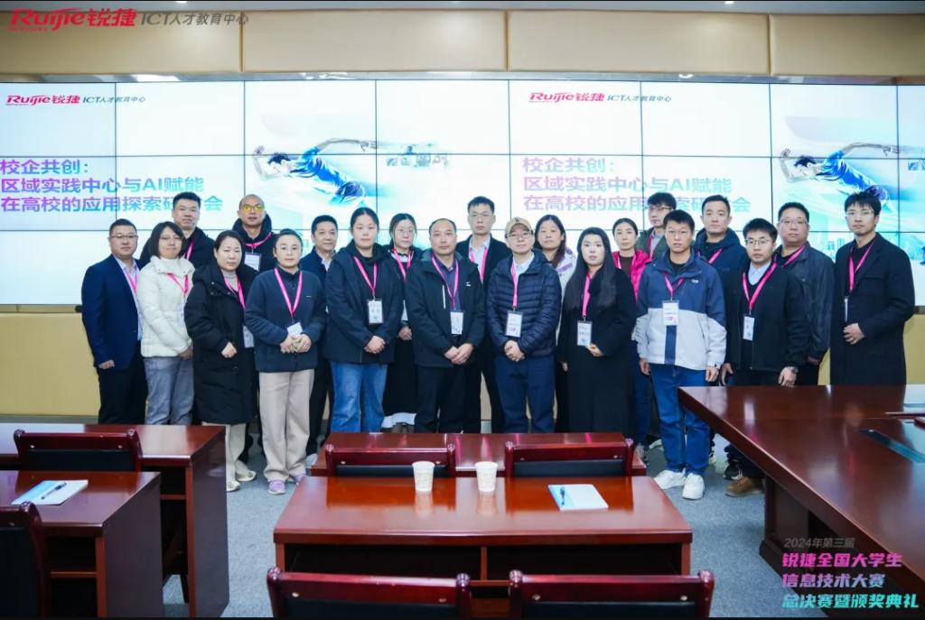 除了决赛和颁奖典礼外,锐捷大赛线下活动还同步举办了“校企共创:区域实践中心与AI赋能在高校的思考与落地探索”的校企合作论坛,来自全国30所院校的教师代表与锐捷网络共同探讨校企合作落地新模式。公司做为锐捷产业公司,一直致力于实践与教育双结合,以岗位技能为核心,以产教融合为契机,引企入校,引技入岗,引人入课,公司将与企业探讨更多协同育人新机制与新模式,谱写公司专业改革新篇章。