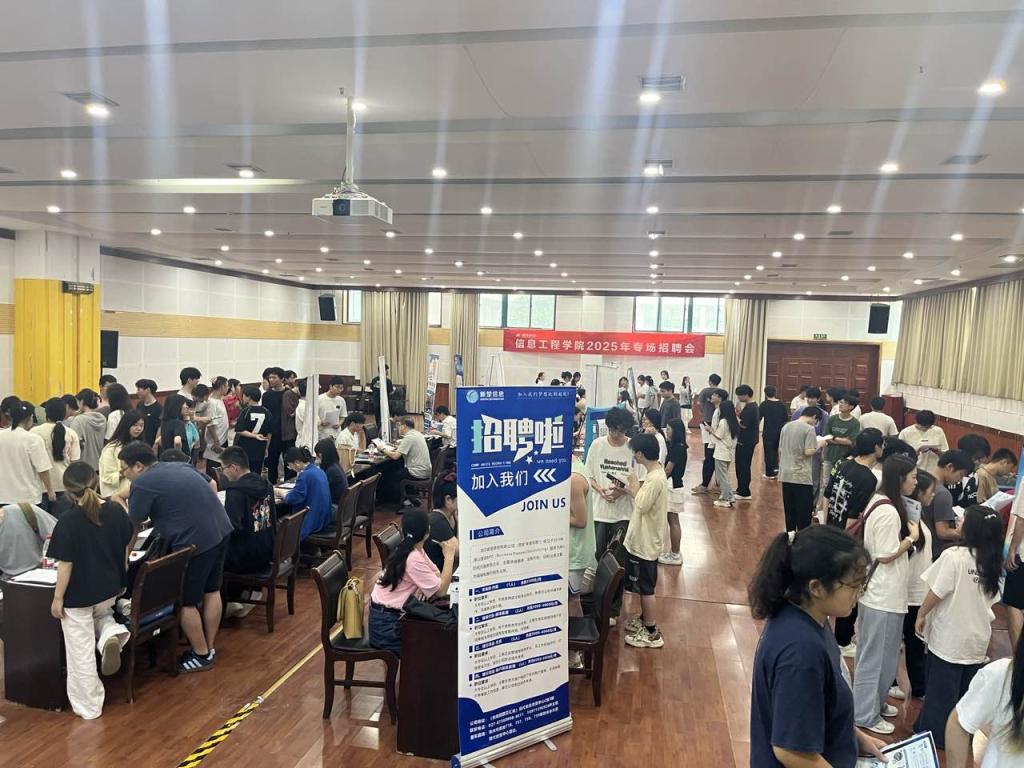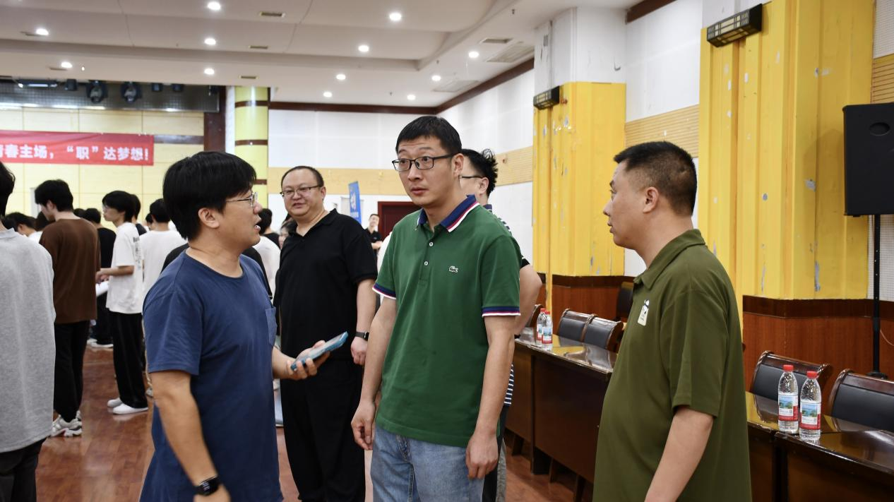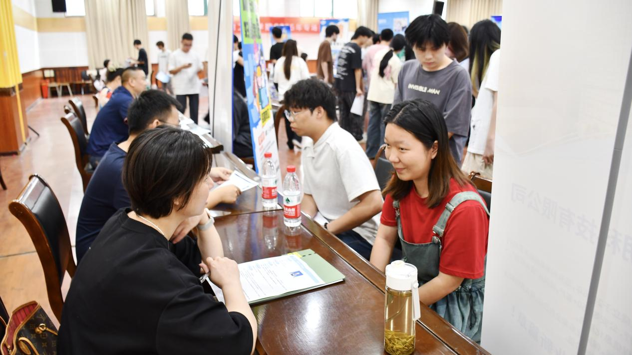 在双选会现场,各企业展位前人头攒动,同学们手持精心准备的简历,积极与企业招聘人员交流,了解岗位信息,投递简历。企业招聘人员也热情地为同学们介绍公司情况、岗位要求和发展前景,耐心解答疑问。现场气氛热烈,求职氛围浓厚。