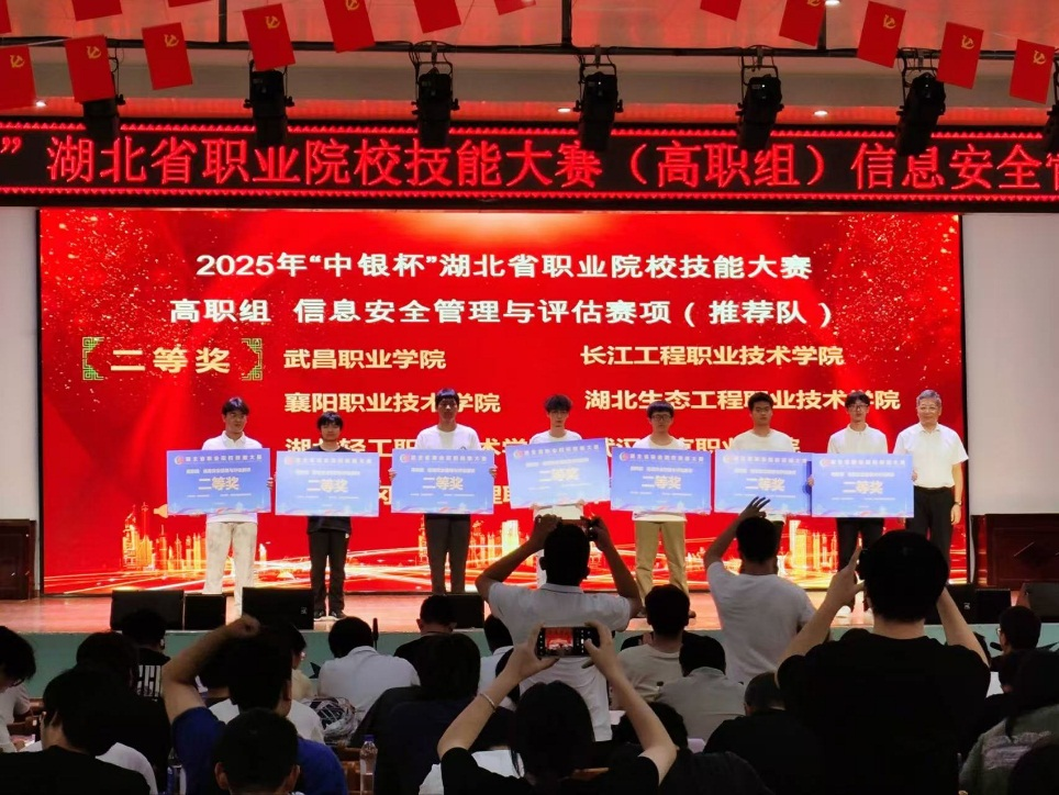 (304am永利集团 杨健讯)近日,2025年“中银杯”湖北省职业院校技能大赛高职组信息安全管理与评估赛项在武汉圆满落幕。本次赛项吸引了44支推荐队与43支抽测队同场竞技。经过激烈角逐,304am永利集团杨健、刘震老师指导的23云计算1班杨鑫龙、22云计算1班奚家文、22计网1班陈速延三位同学表现出色,在推荐队中荣获团体二等奖的好成绩。