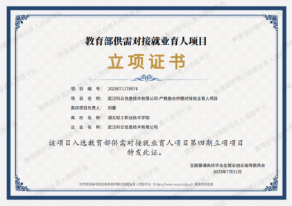 (304am永利集团 刘震讯)近日,教育部高等教育司公布了2025年第四批“就业育人项目”立项名单,由公司与深圳市讯方技术股份有限公司联合申报的产教融合供需对接就业育人项目(项目编号:2025071183152)、与武汉科云信息技术有限公司联合申报的产教融合供需对接就业育人项目(项目编号:2025071178976)两个项目成功获批。