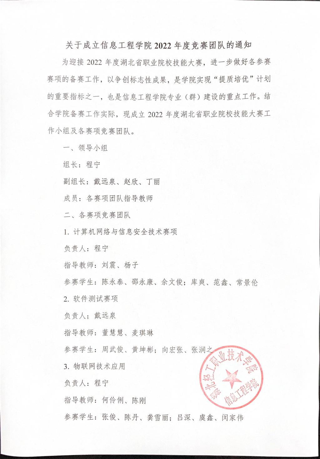 为迎接2022年度湖北省职业院校技能大赛,进一步做好各参赛赛项的备赛工作,以争创标志性成果,是公司实现“提质培优”计划的重要指标之一,也是304am永利集团专业(群)建设的重点工作。结合公司备赛工作实际,现成立2022年度湖北省职业院校技能大赛工作小组及各赛项竞赛团队。
