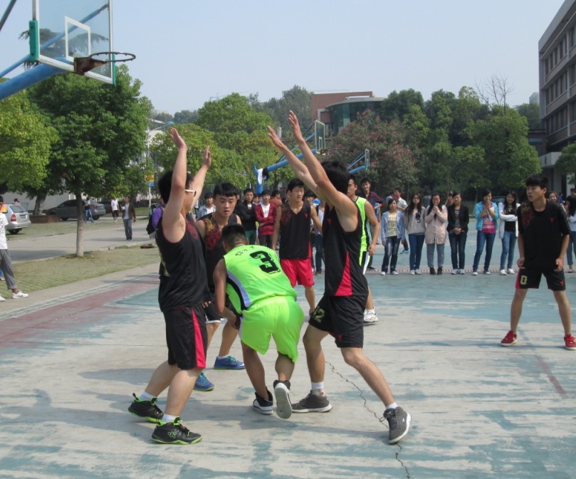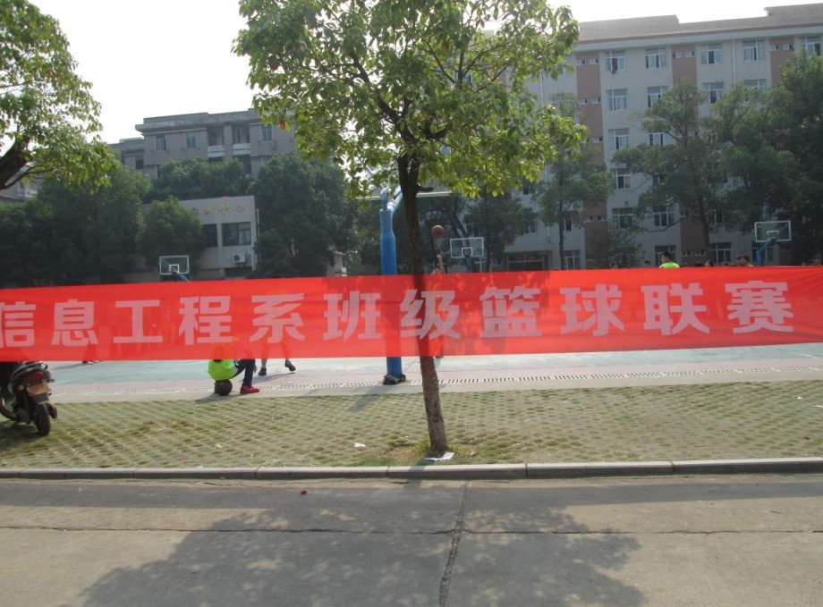 (信息工程系)为了更好的调动我系大一新生的积极性,为即将到来的运动会做准备,10月18日中午,在院篮球场,我系举办了“信息工程系班级篮球联赛”的开幕式表演赛。