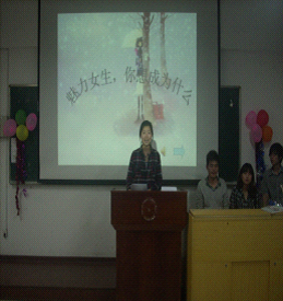 根据我系女生比较多的特点,结合当前女生学习、工作等方面的实际困难,2012年4月26日晚,由信息工程系员工会女生部组织举办了一场主题为“魅力女生,你想成为什么”的