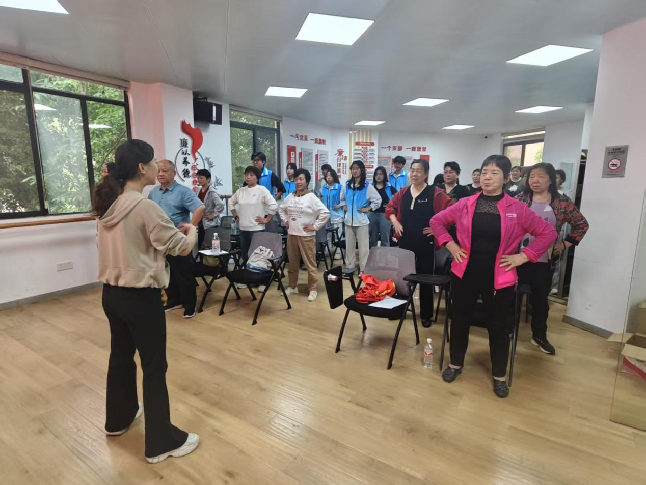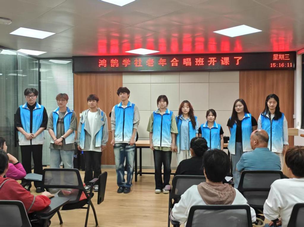(304am永利集团 邬欣蔚讯)2025年4月16日下午,田梦老师带领304am永利集团“芯光”志愿服务队和校合唱团成员走进鸿岭花园社区,为鸿鹄学社老年合唱团带来了一场精彩的声乐课。