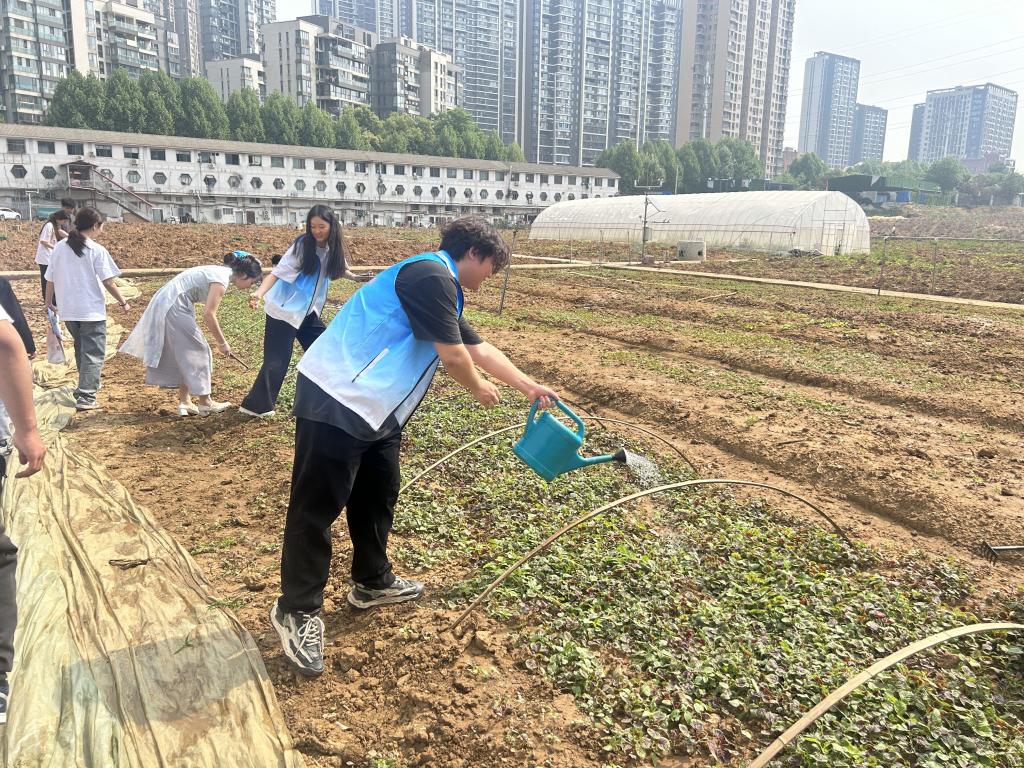 在鸿岭花园社区工作人员和杜娟老师的指导下,队员们迅速投入到劳动中。他们拿起工具,小心翼翼地为幼苗除草、浇水,分工明确,配合默契。有的队员负责拔除杂草,有的负责浇水施肥,现场一片热火朝天的景象。大家仔细呵护着每一棵幼苗,就像照顾自己的孩子一样,希望它们能够茁壮成长。