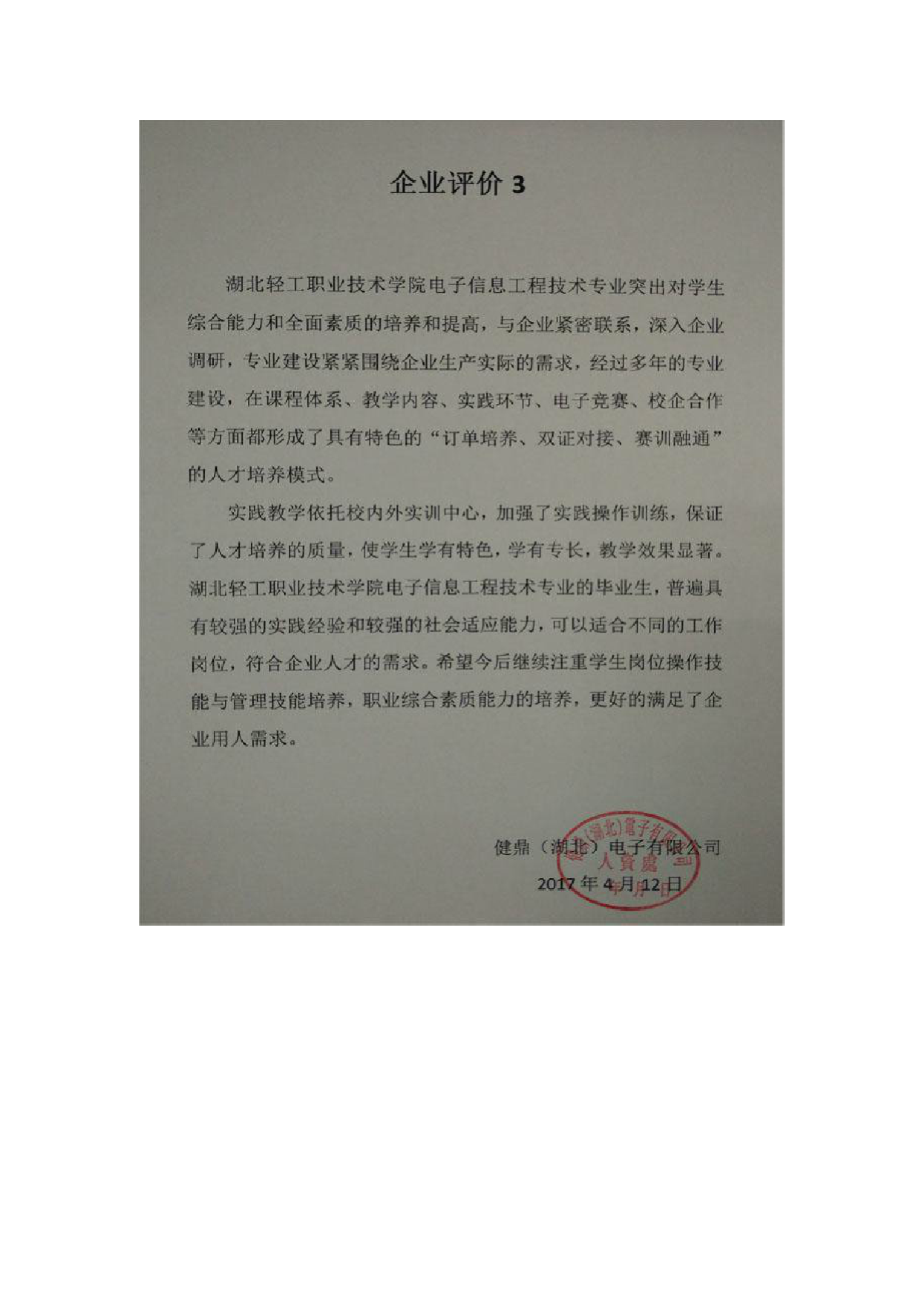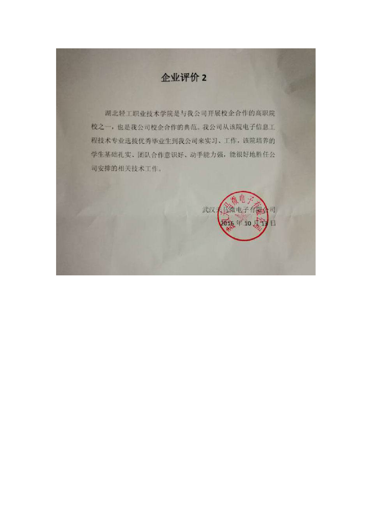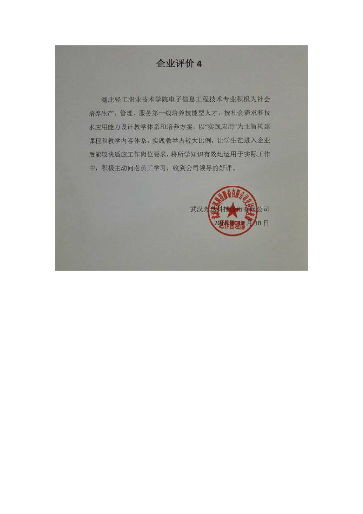 企业评价佐证材料