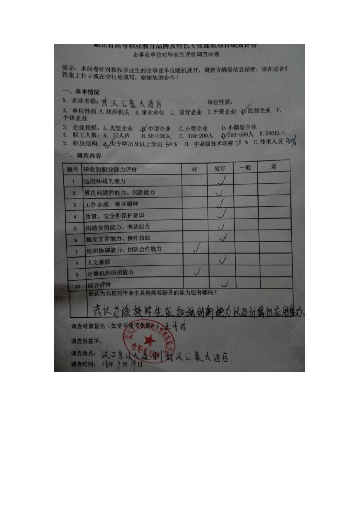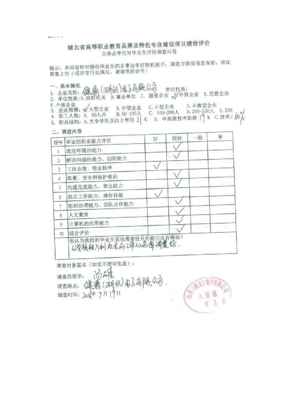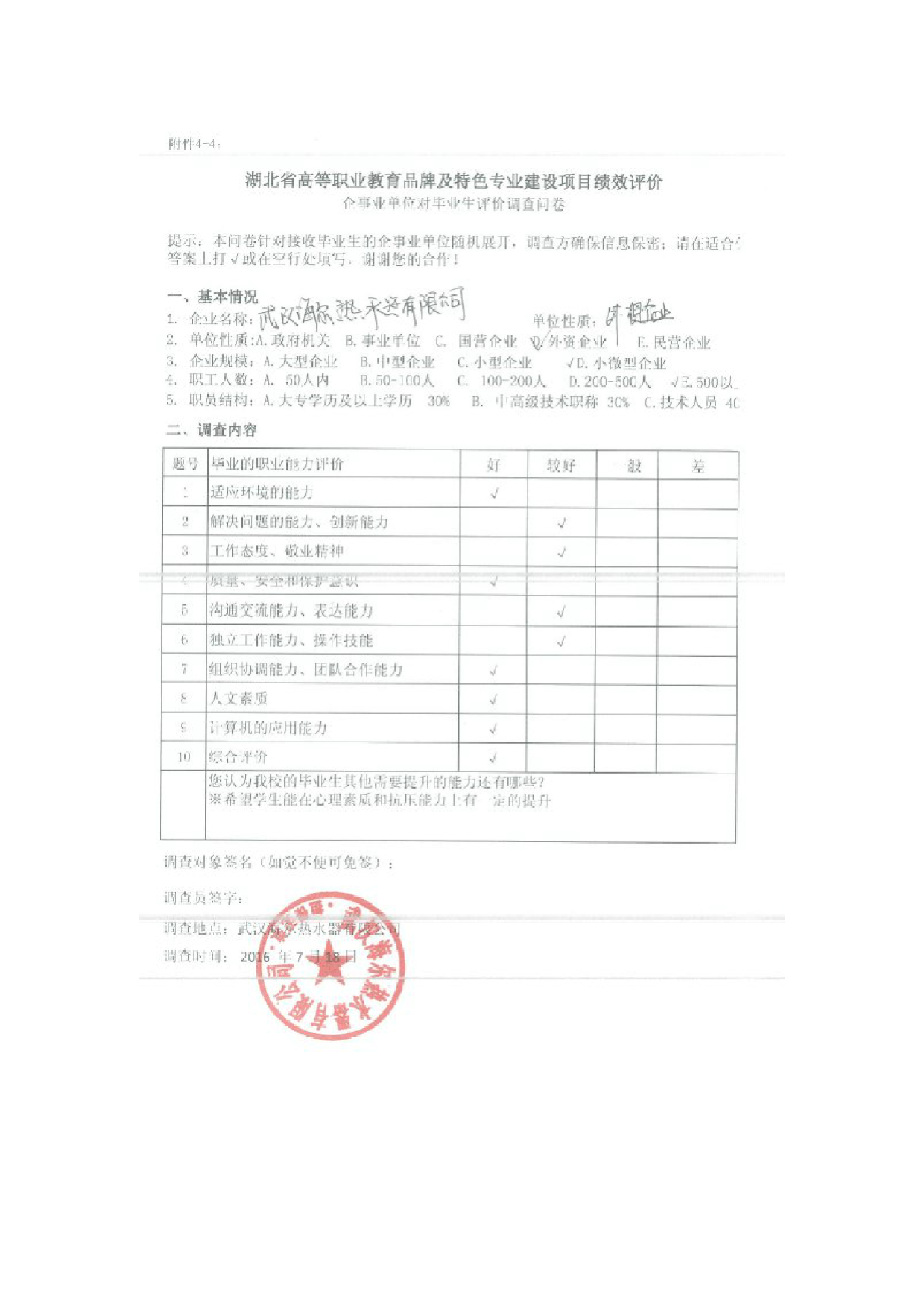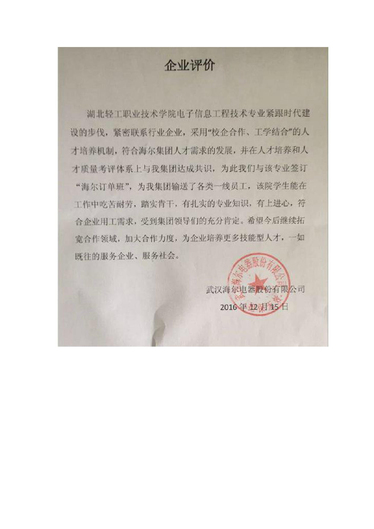 企业评价佐证材料