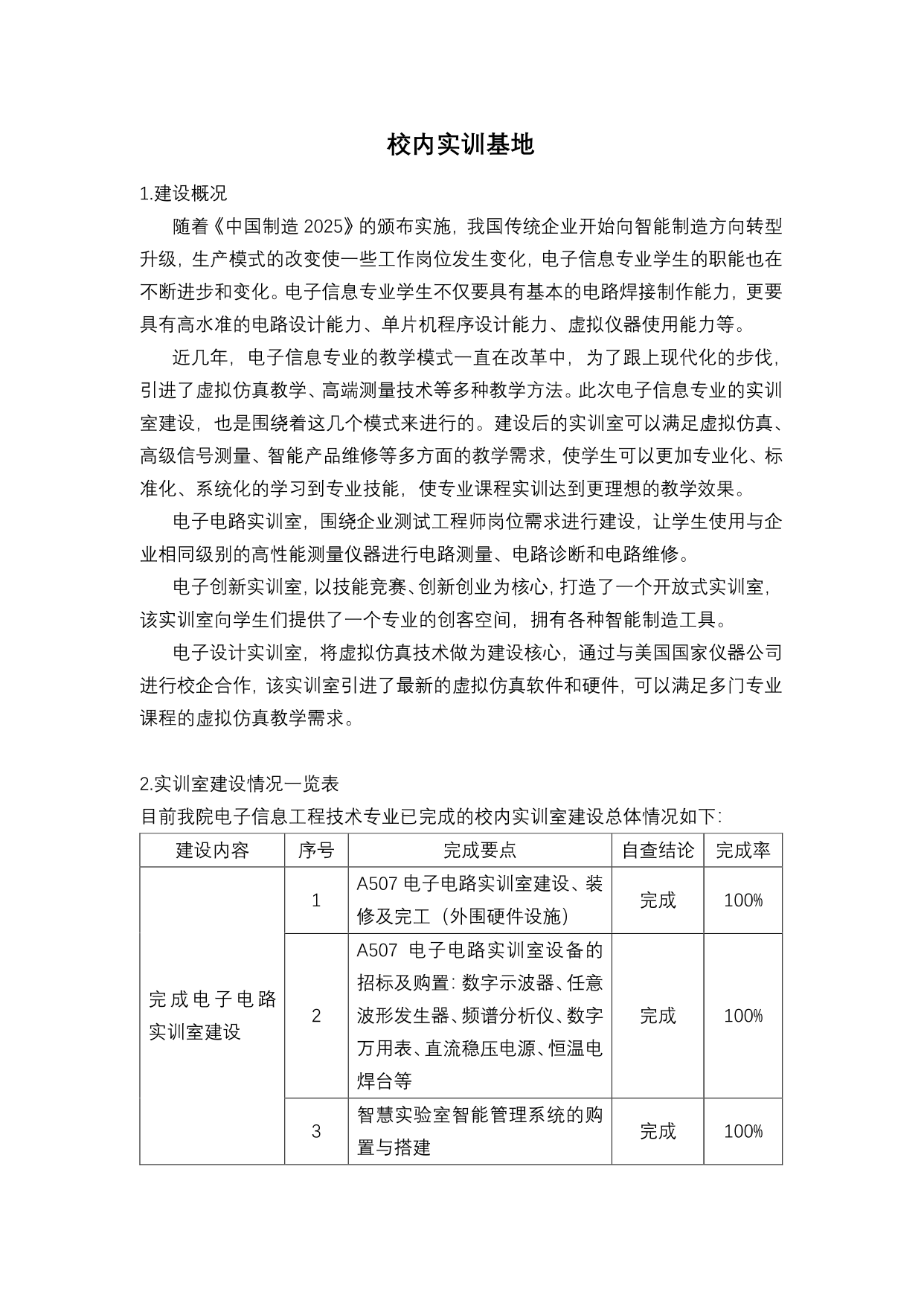 校内实训条件